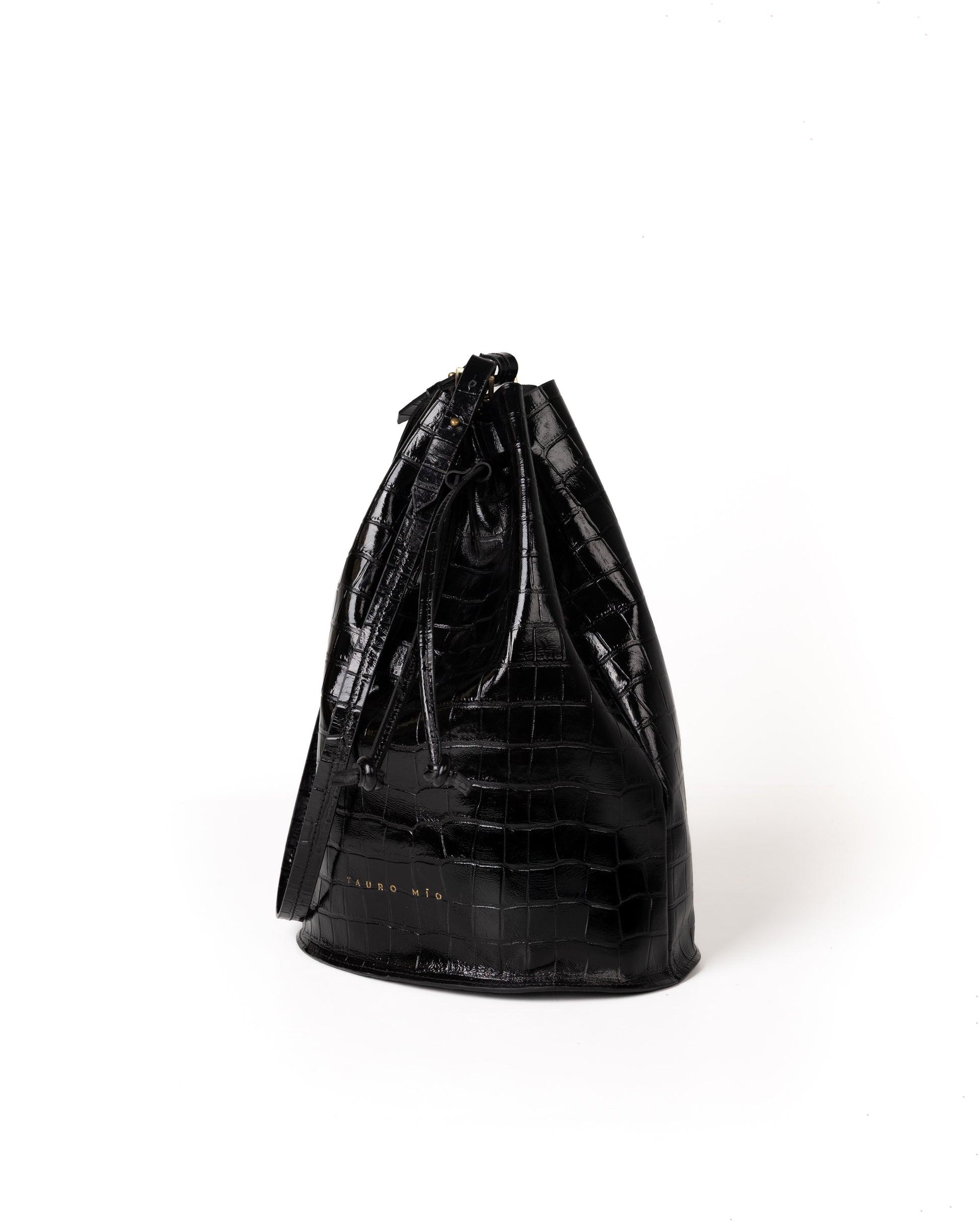 Bolso Bucket Bag Piel Estampado Coco Negro Minimal Edition