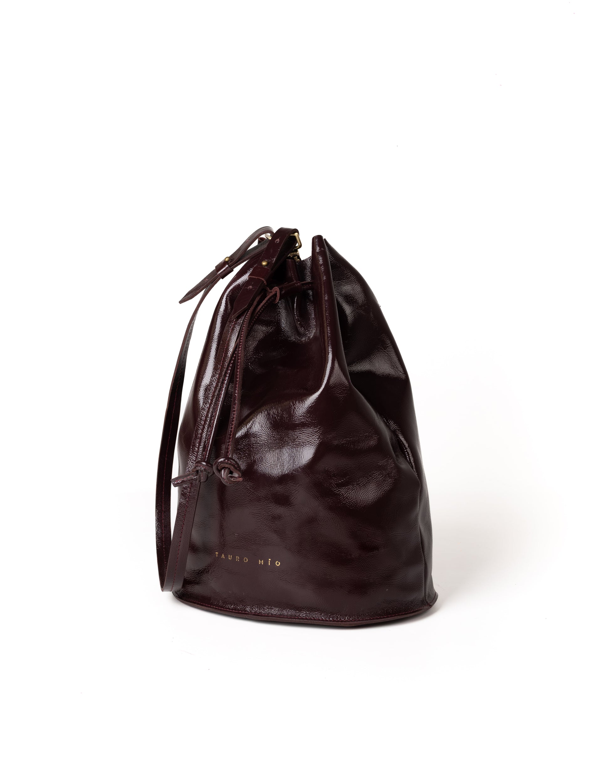 Bolso Bucket Bag Piel Charol Vino Minimal Edition