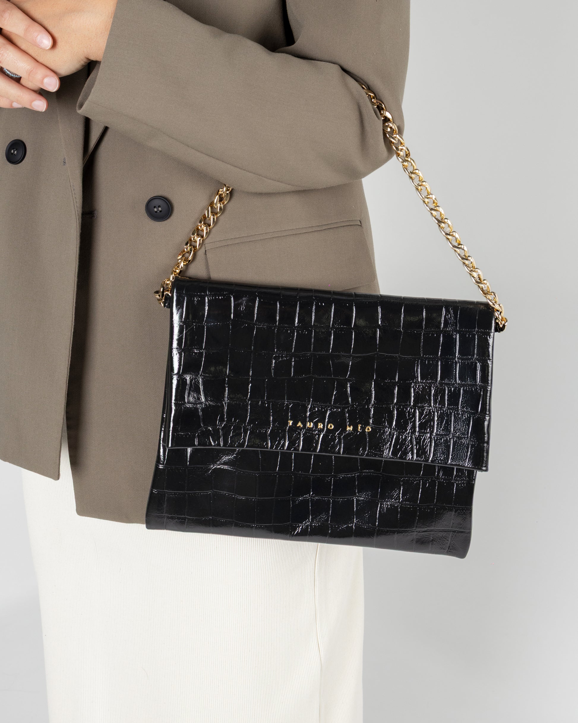 Su tamaño compacto y diseño versátil permiten llevarlo como bolso de mano o al hombro con su cadena extraíble. Ideal para ocasiones especiales en las que el estilo es protagonista.